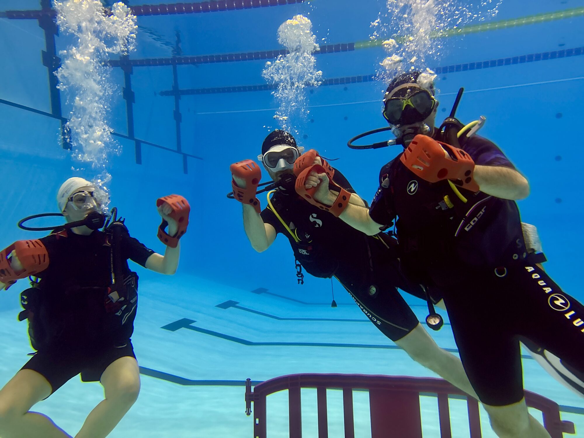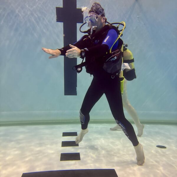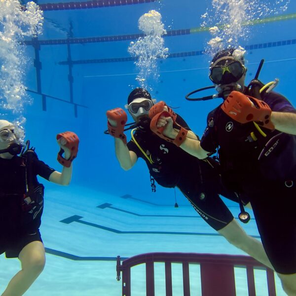 Faire jouer quelqu’un à la boxe sous l’eau n’est pas aussi anodin que cela… Tous nos plongeurs se sont prêtés au jeu, d’abord avec un petit sourire aux lèvres puis avec beaucoup d’application en comprenant au fur et à mesure tous les avantages à pouvoir maintenir un niveau d’immersion.