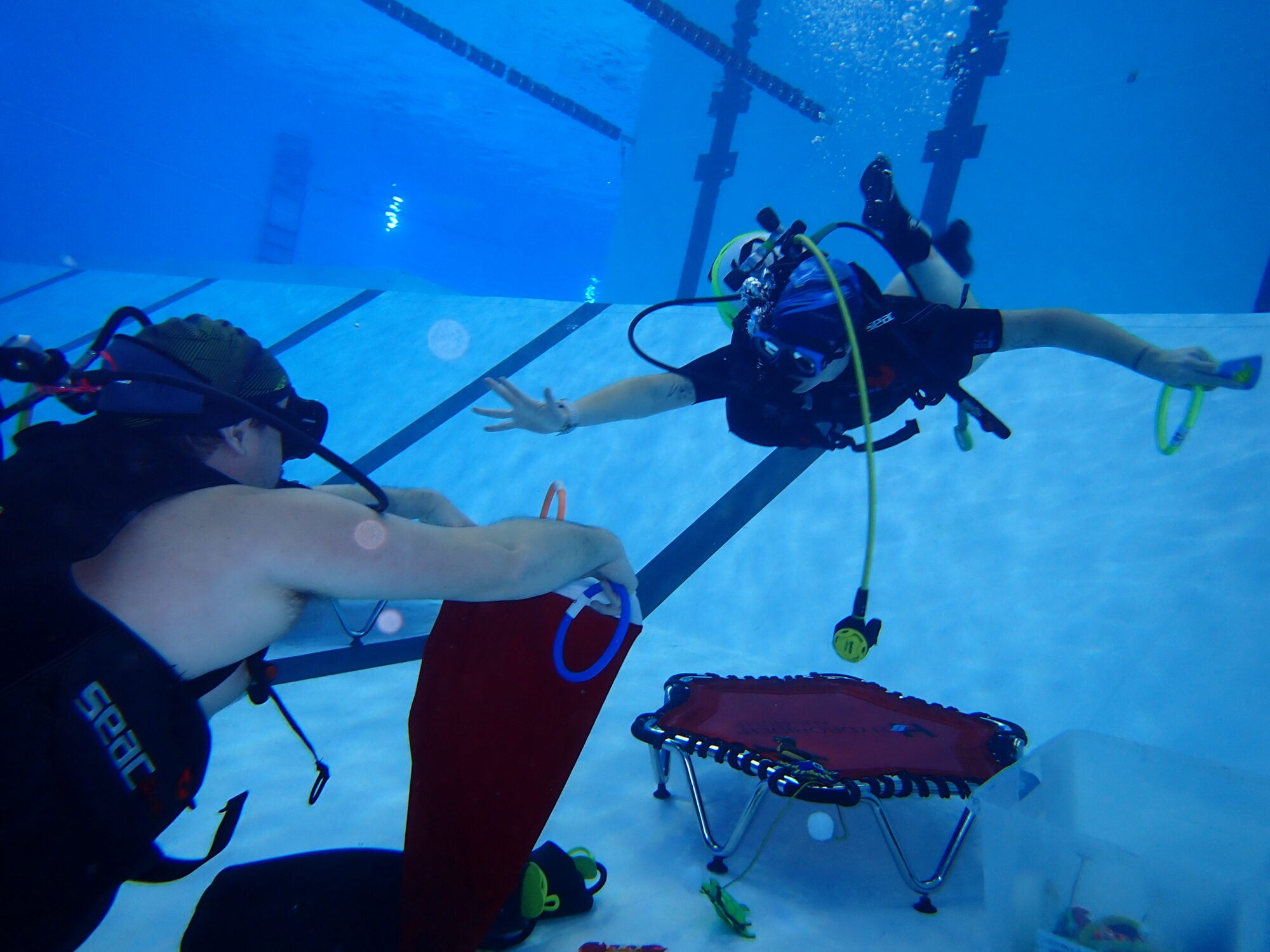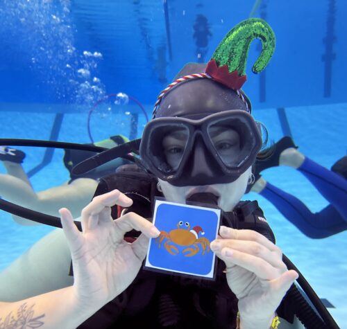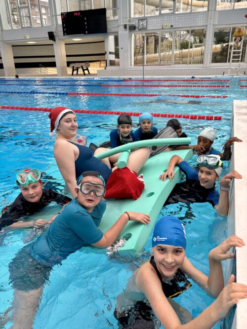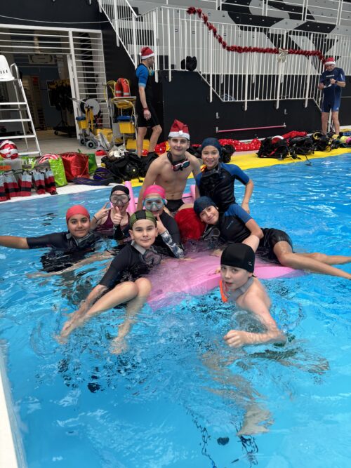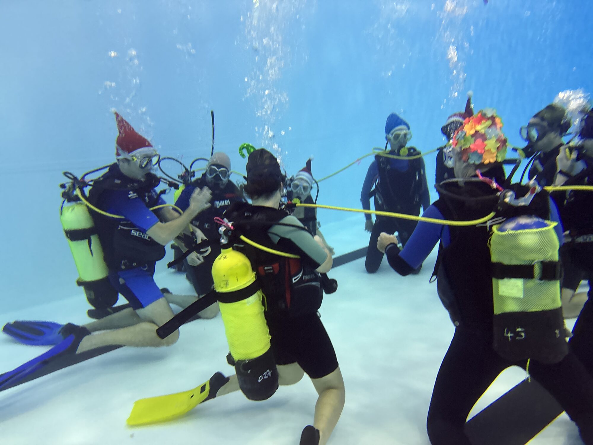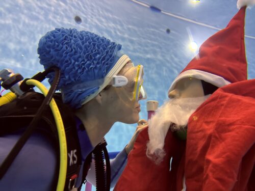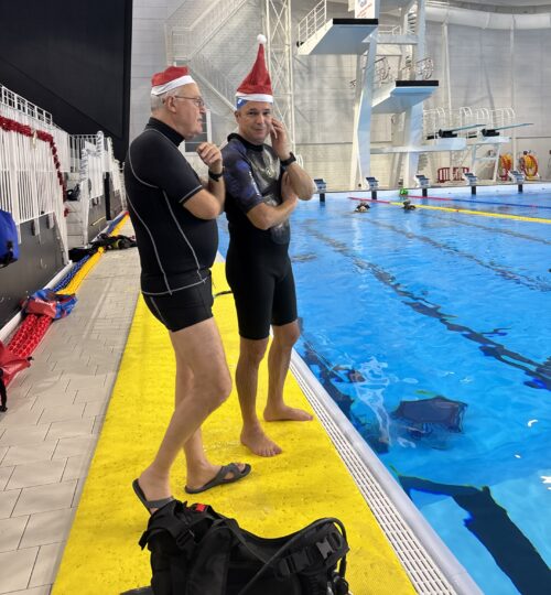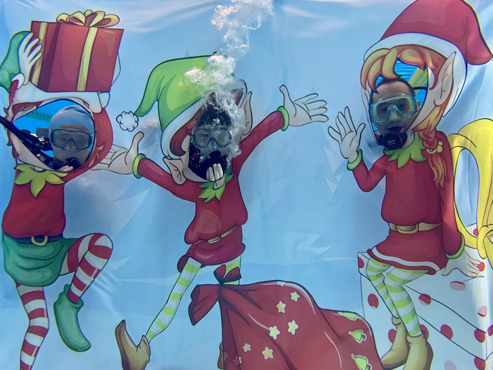 Dès l’échauffement, l’esprit de Noël était palpable : course de traîneau du Père Noël, relais de cadeaux et « bois de rennes » ont mis les plongeurs au défi tout en créant une atmosphère conviviale. La super structure du stade nautique Maurice Thorez a également été un terrain de jeu idéal pour se lancer dans des activités pleines de rires et de bonne humeur.